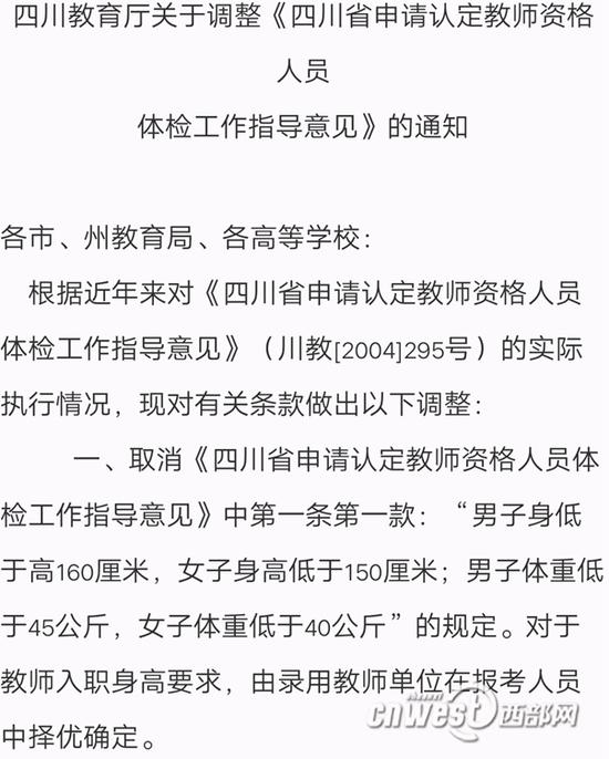 (原标题:因身高不足1米5师范生无缘教师资格证 教育厅:或将取消限制)
