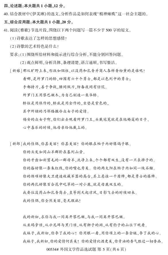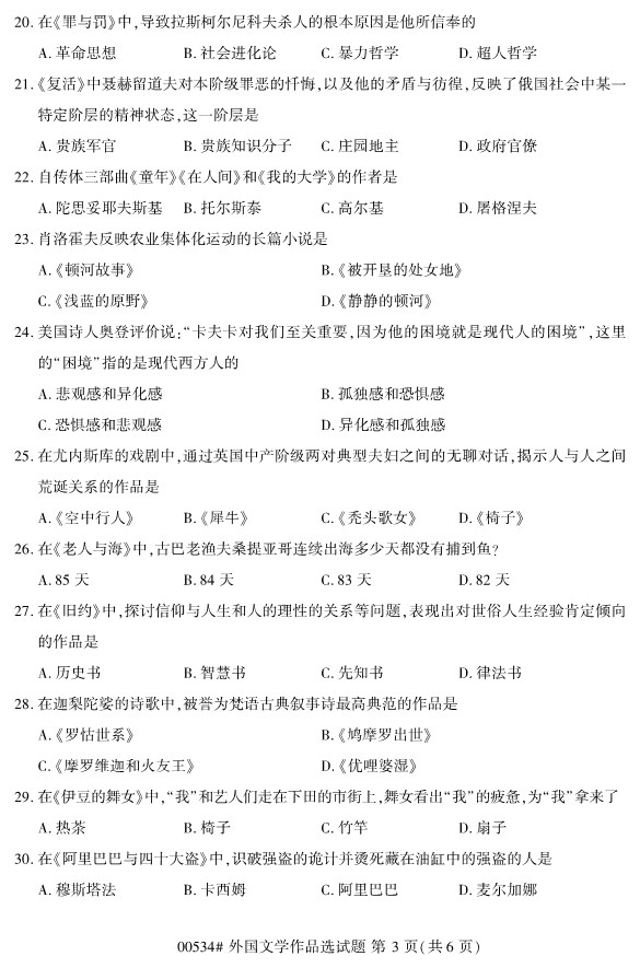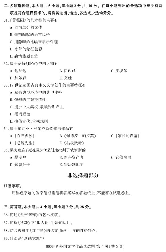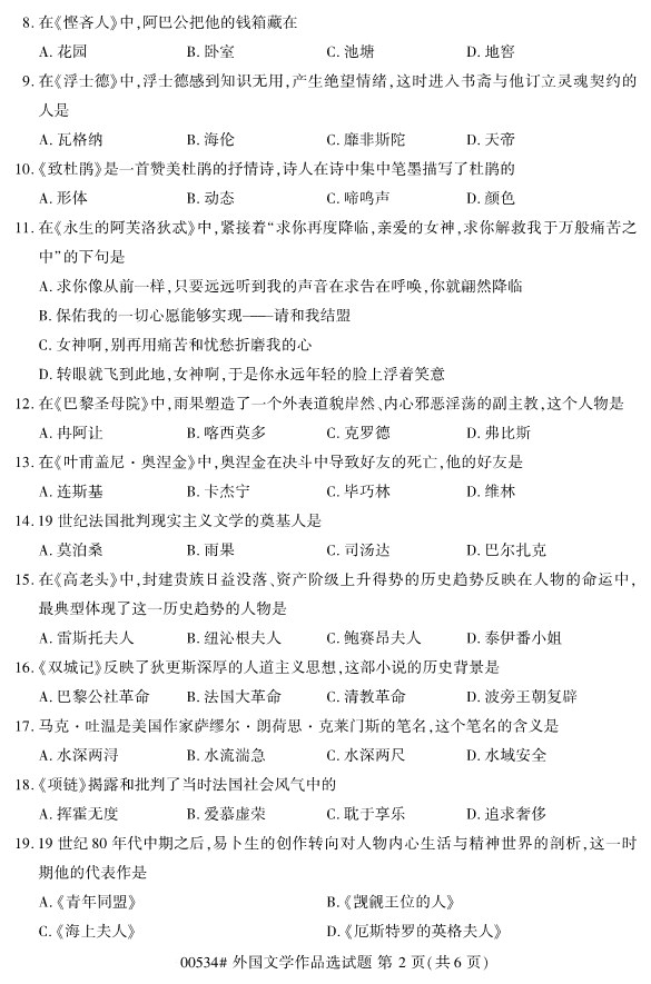 全国2019年10月自考00534外国文学作品选试题