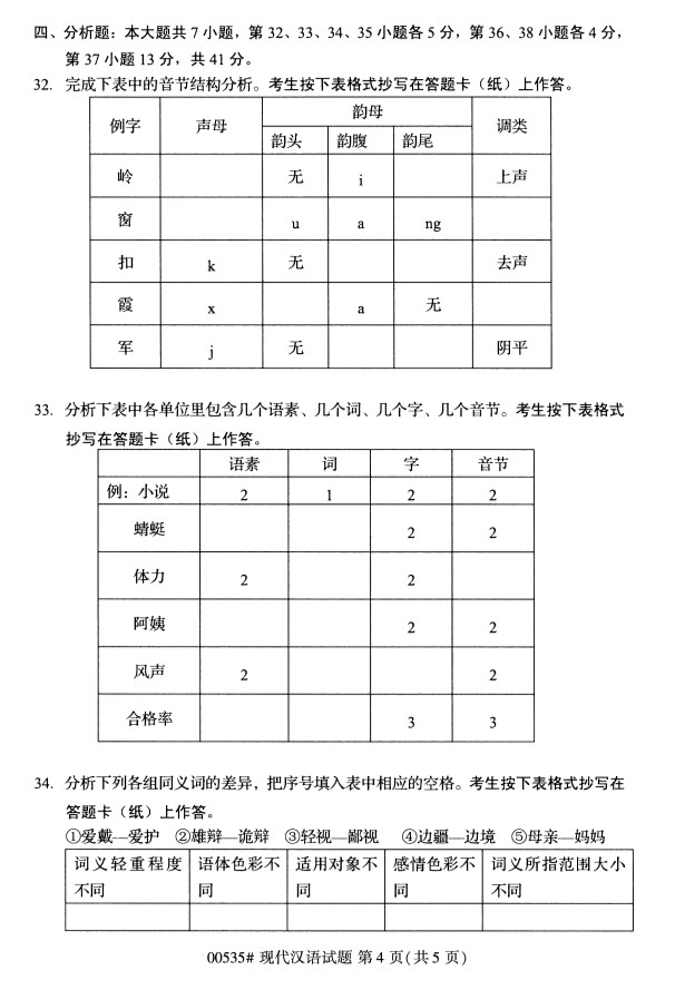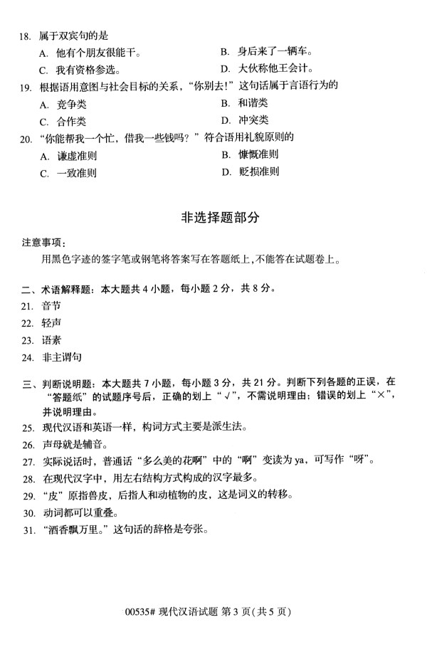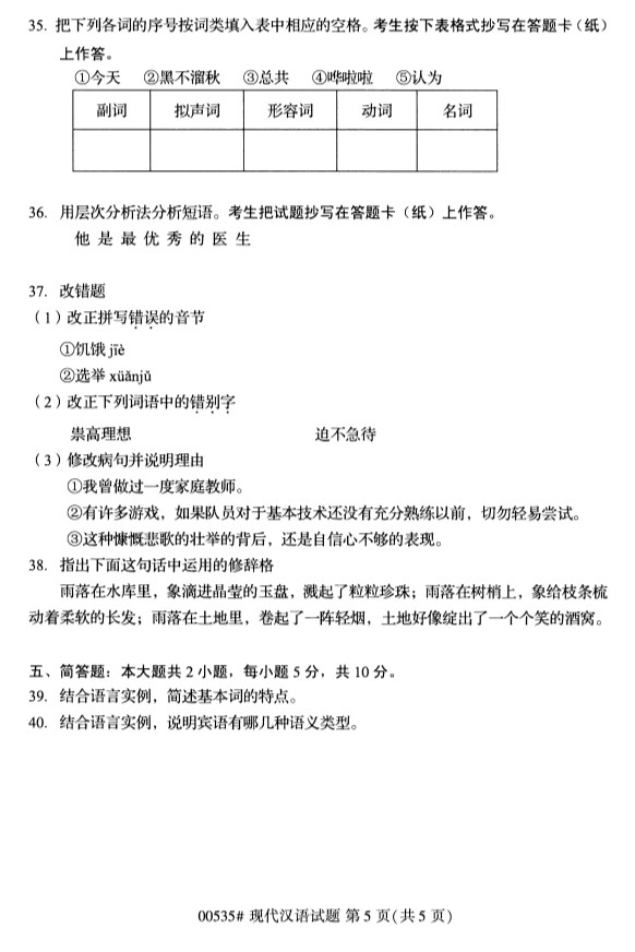 全国2019年10月自考00535现代汉语试题