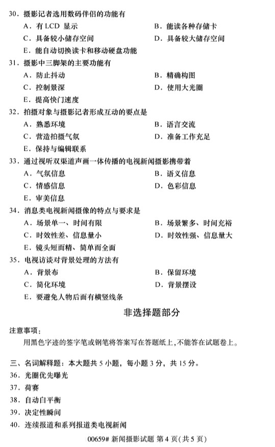 全国2019年10月自考00659新闻摄影试题