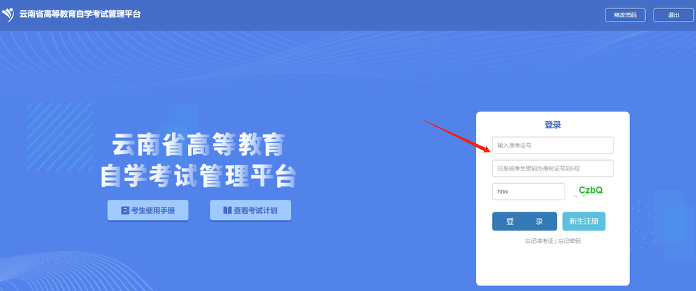 1.登入云南省高等教育自学考试管理平台,输入准考证号及密码
