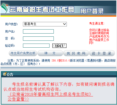 2、考生进入云南省招生考试工作网之后,根据要求填写相关信息,完成报名缴费,最后根据提示信息去往各对应州(市)、县(市、区)进行现场确认。